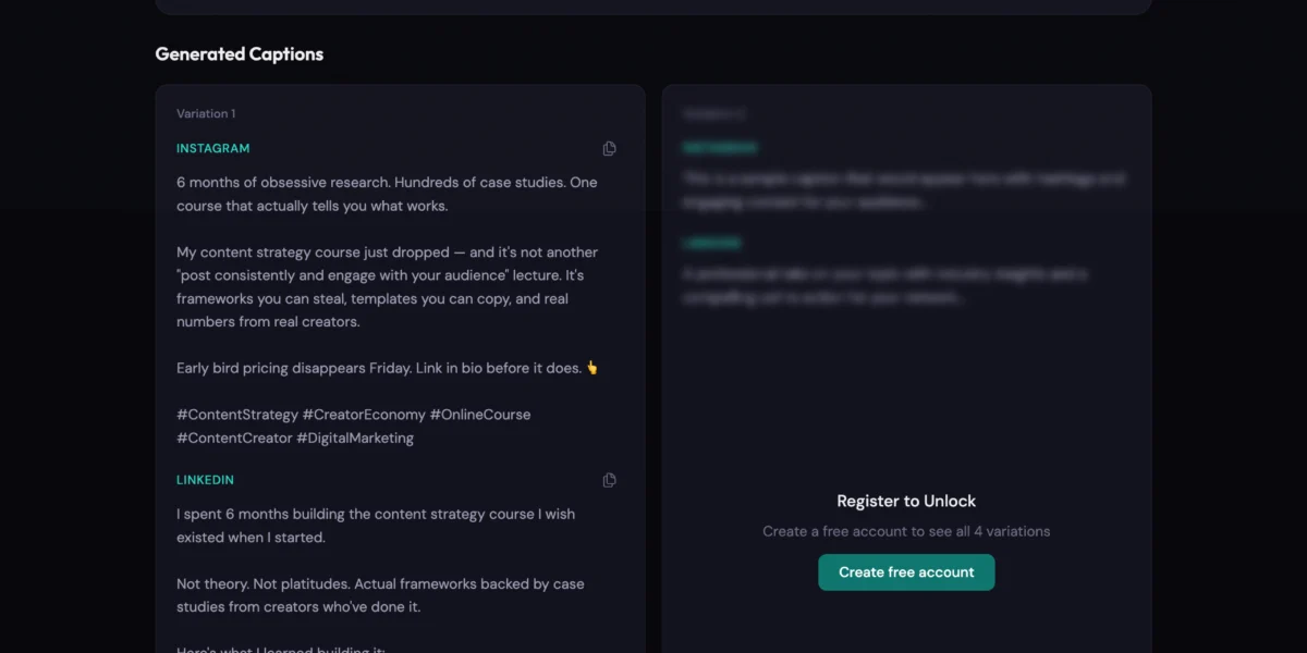 Writing well for one platform is hard enough. Writing platform-native captions for all four? That’s where most creators either burn out or default to the same generic copy everywhere.